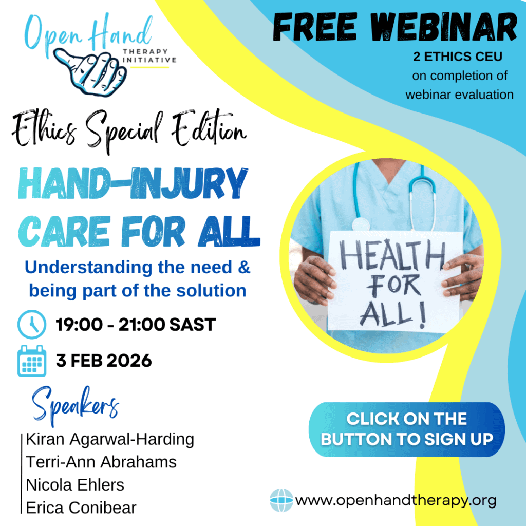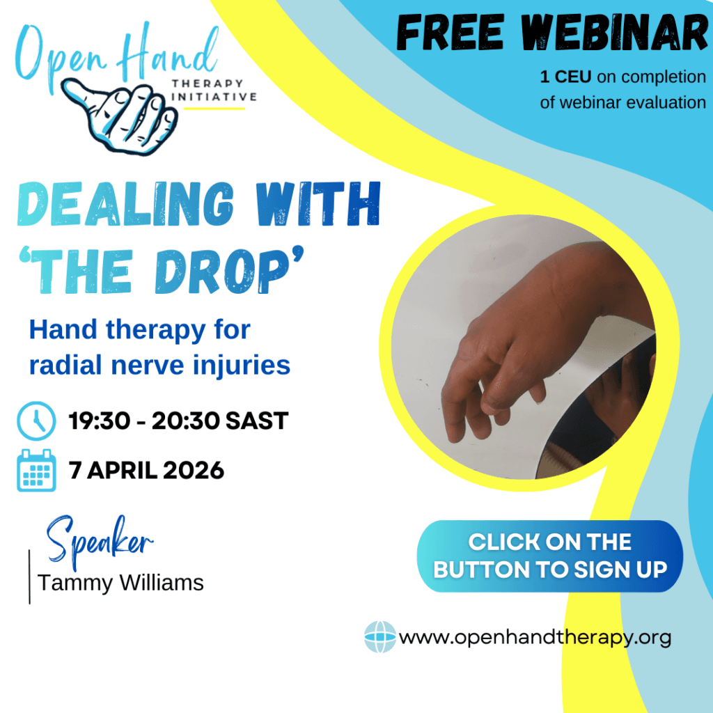 Our webinars are aimed at occupational therapists and physiotherapists with basic/intermediate hand therapy knowledge and skills. However, all health professionals involved in hand-injury care are welcome.
